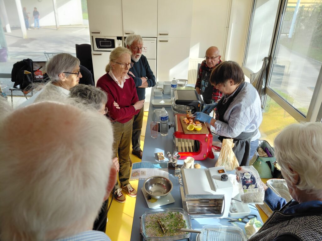 Nous étions douze membres, onze interprètes à table et une cheffe au piano, réunis le 8 avril au centre Eric Tabarly, pour découvrir et partager l’intérêt de la cuisson basse température avec l’Omnicuiseur vitalité. L’atelier était programmé pour tester les qualités culinaires, gustatives et pratiques de ce mode de cuisson. Au fil des réalisations, des dégustations et des questions, découverte pour certains ou approfondissement pour d’autres, l’atelier s’est transformé en plaisir gastronomique pour tous.