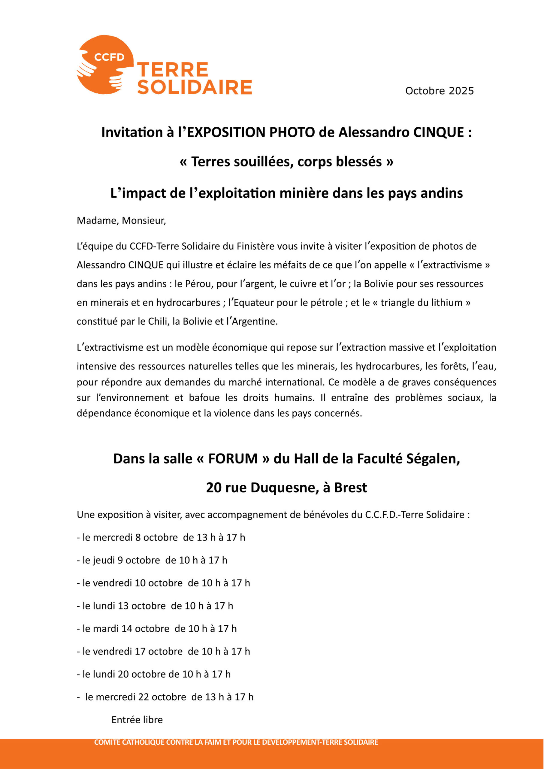 Philippe Marchand nous signale la tenue d’une exposition de photos dans la salle « forum » du hall de la faculté Ségalen, 20 rue Duquesne, à Brest (entrée libre).